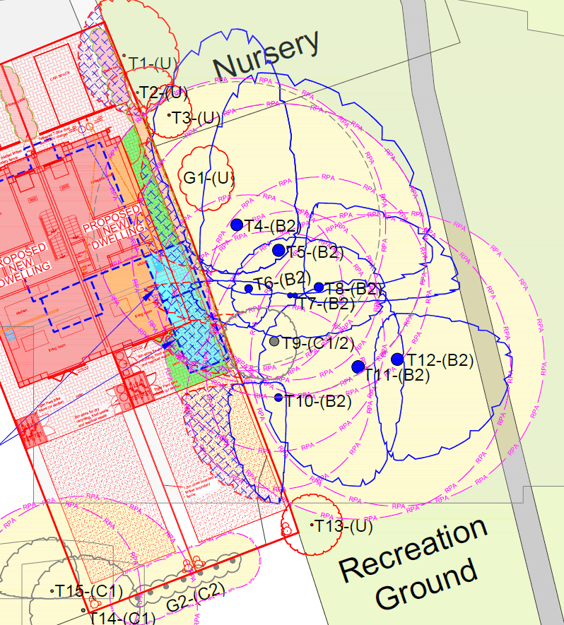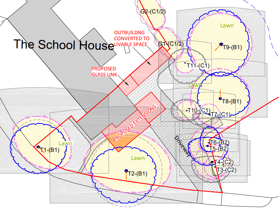 An arboricultural impact assessment is regularly requested by the LPA as part of the planning submission. This is an exercise whereby a detailed assessment of the impacts of the scheme and every aspect of it is made on the retained trees and is premised on the BS5837 tree survey. Root protection areas, shade patterns, loss of trees or the need to prune trees are some of the aspects considered and this will be illustrated on a tree impacts plan. Ideally if a scheme has considered the tree population based on the BS5837 survey from the onset so that impacts are minimised, greater success in the planning process is likely. Excessive impacts including long term issues are material reasons to refuse an application